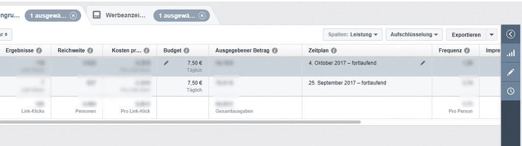 Auch im Facebook Business Manager kannst du das Budget auf Anzeigengruppen-Ebene anpassen: