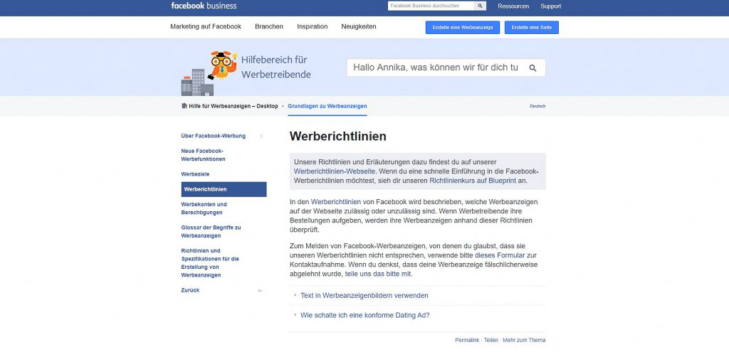 Die Werberichtlinien von Facebook