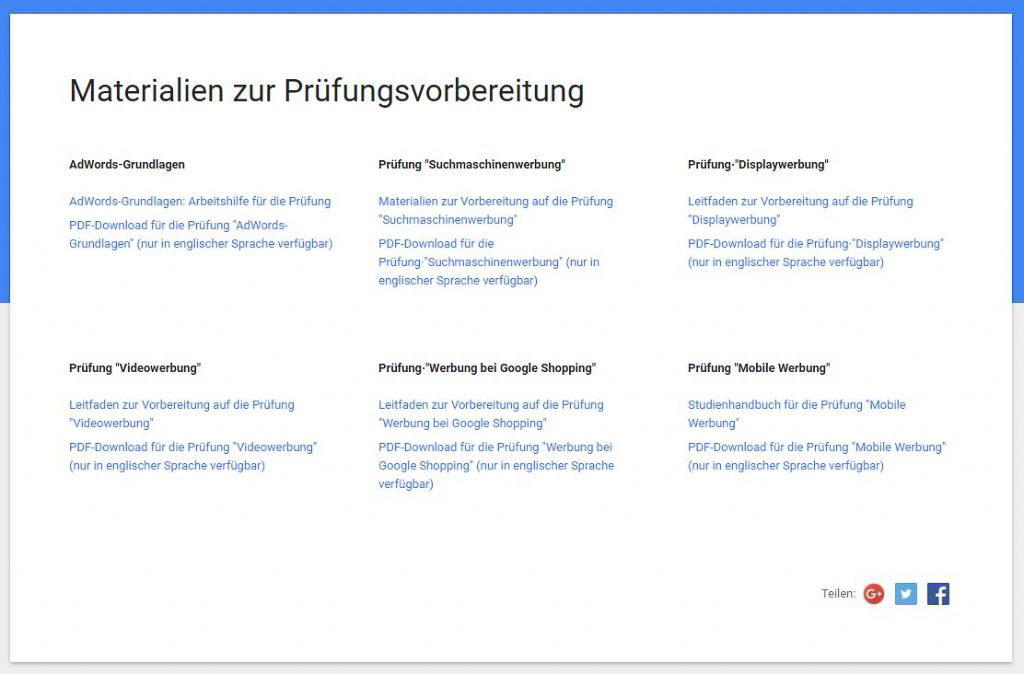Google selbst bietet unter support.google.com Leitfäden zur Prüfungsvorbereitung: