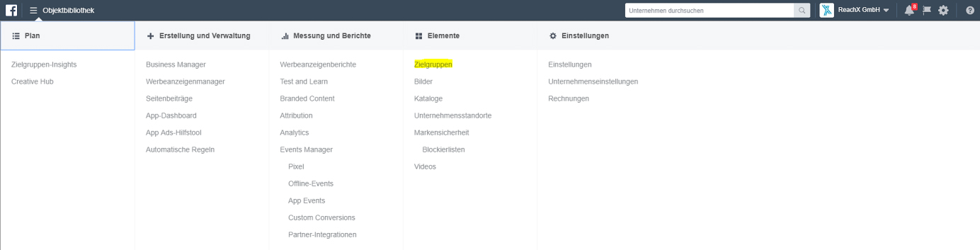 → Gehen Sie dazu im Werbeanzeigenmanager auf das Element „Zielgruppen“.